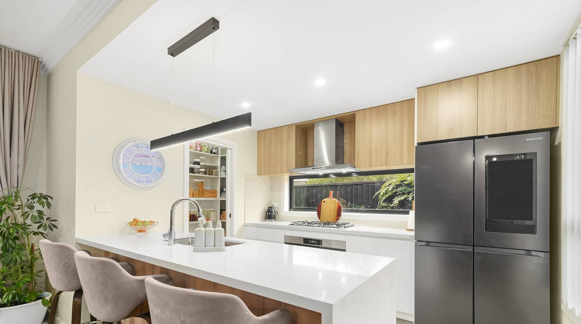Located in one of Austral's most desirable areas, this modern home offers spacious interiors, quality finishes, and a practical family-friendly layout. The ground floor features a light-filled open-plan kitchen, living, and dining area with ample space for lounge and dining settings. The kitchen includes a large oven, pantry, and dishwasher with smart app-controlled system. High 2.7-metre ceilings enhance the sense of space throughout the home. An alfresco area of generous size extends the living space outdoors, perfect for entertaining. The ground level also includes a powder room, a laundry with separate external access to the backyard, tiled flooring, and excellent storage options including a separate general storage room and a dedicated linen store. A single garage with built-in storage cabinets completes the lower level. Upstairs offers a small living area or study nook, ideal for working from home. The master bedroom includes a walk-in wardrobe and ensuite, while the remaining bedrooms are well-sized and with built in wardrobe. Features include: • 4 bedrooms, 2.5 bathrooms • Master with ensuite and walk-in wardrobe • Open-plan kitchen, living & dining • Dishwasher, large oven & pantry • High ceilings (2.7m) • Ducted air conditioning • Large Alfresco area • Powder room downstairs • Laundry with external access • Single garage with built-in storage • Separate storage and linen areas • Gas connection • Freestanding bathtub • Tiled downstairs, parquetry upstairs • Built-in wardrobes • Fully fenced yard • Energy-efficient appliances Conveniently Located Near Amenities: > Close proximity to Leppington Station and town centre > Close proximity walking distance to Austral Public School, St. Anthony of Padua school, Unity Grammar College, Al-Faisal College, Arrahman College and local shops > Seamless connectivity to the M7 and M5 motorways for effortless travel Ideal for families seeking space, comfort, and convenience in a growing Austral location. For more information or to book an inspection contact Multi Dynamic Ingleburn today on 02 9618 6209. Disclaimer: Multi Dynamic believes that all information contained herein to be true and correct to the best of our ability and in no way misleading, however, all interested parties are advised to carry out their own enquiries and relevant searches.