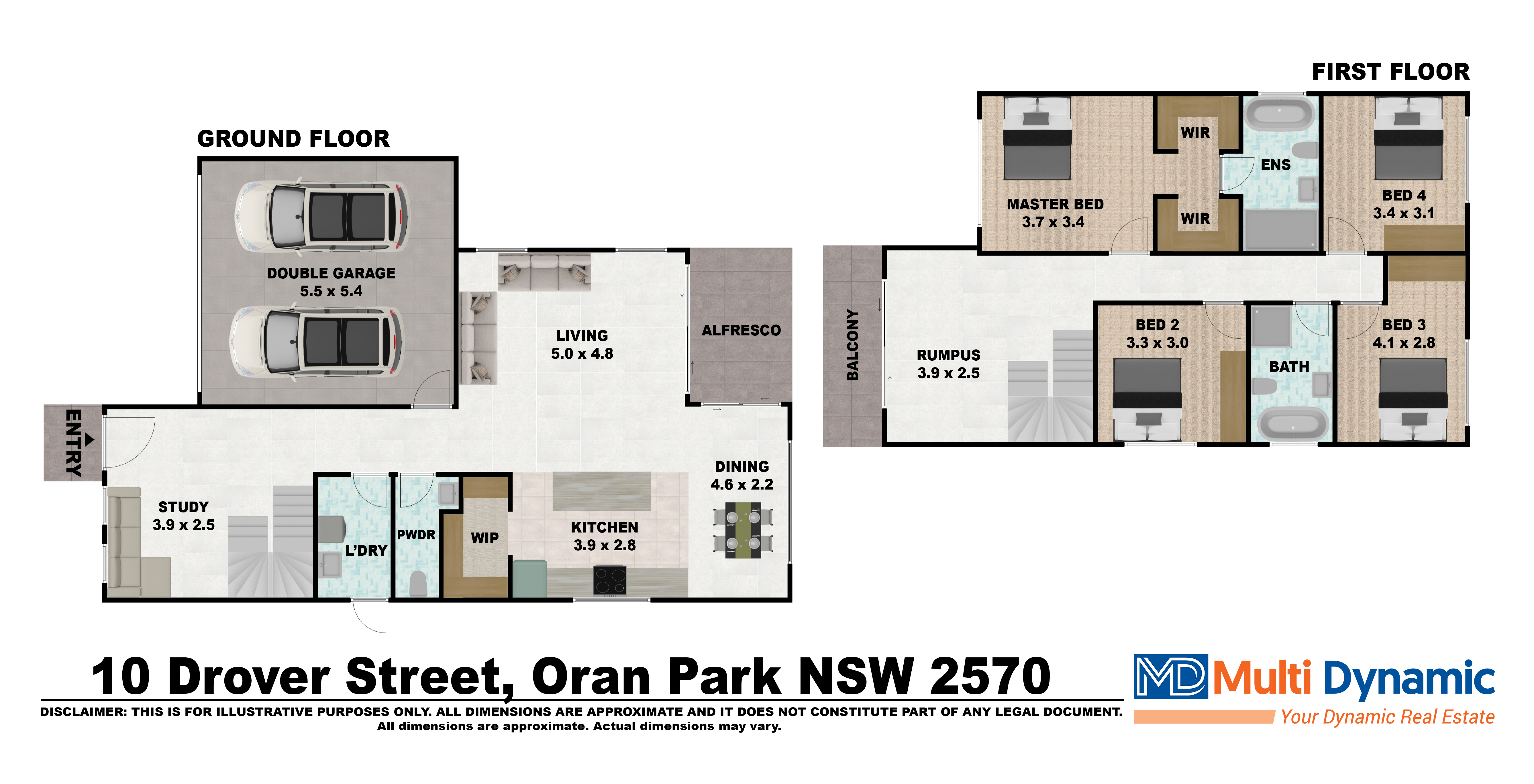 Multi Dynamic Ingleburn presents 10 Drover Street , Oran Park NSW, beckons you with its custom-built charm and contemporary design. This double-story masterpiece boasts 4 bedrooms, 2.5 bathrooms, and a spacious 2-car garage, offering the perfect blend of luxury and functionality for modern living. Step inside and be greeted by multiple living spaces, thoughtfully designed to accommodate all your family's needs. The gourmet kitchen is a culinary enthusiast's delight, featuring a stunning 40mm stone bench top with waterfall ends, complemented by top-of-the-line 900mm kitchen appliances and a convenient walk-in pantry. Entertaining is a breeze in the open plan living area, seamlessly flowing into a generous backyard space, providing ample room for outdoor gatherings. Retreat to the lavish master bedroom complete with a walk-in robe and ensuite, while the remaining bedrooms offer built-in robes for added convenience. Practicality meets elegance in every corner, from the laundry equipped with a 40mm stone bench top and storage units, to the bathrooms boasting luxurious 40mm stone bench-tops and tiles reaching the ceiling. Additional features include: • 2.7m ceiling height ground floor • Ducted AC • 40mm stone bench top with water fall ends. • 900mm cooking appliances. • 40mm stone bench top in the laundry and bathrooms • Tiles to ceiling in ensuite and bathroom • Glass balustrade in the balcony and stairs • Downlight throughout the house • Video intercom system for enhanced security and convenience • Approximately 500m away from under construction Oran Park Hotel, Leisure Centre and splash park. • Approximately 1.5km away from proposed train station Located near the Oran Park Town Centre, esteemed schools, and lush parks, this home offers the perfect balance of tranquillity and convenience. Disclaimer: Multi Dynamic believes that all information contained herein to be true and correct to the best of our ability and in no way misleading, however, all interested parties are advised to carry out their own enquiries and relevant searches.