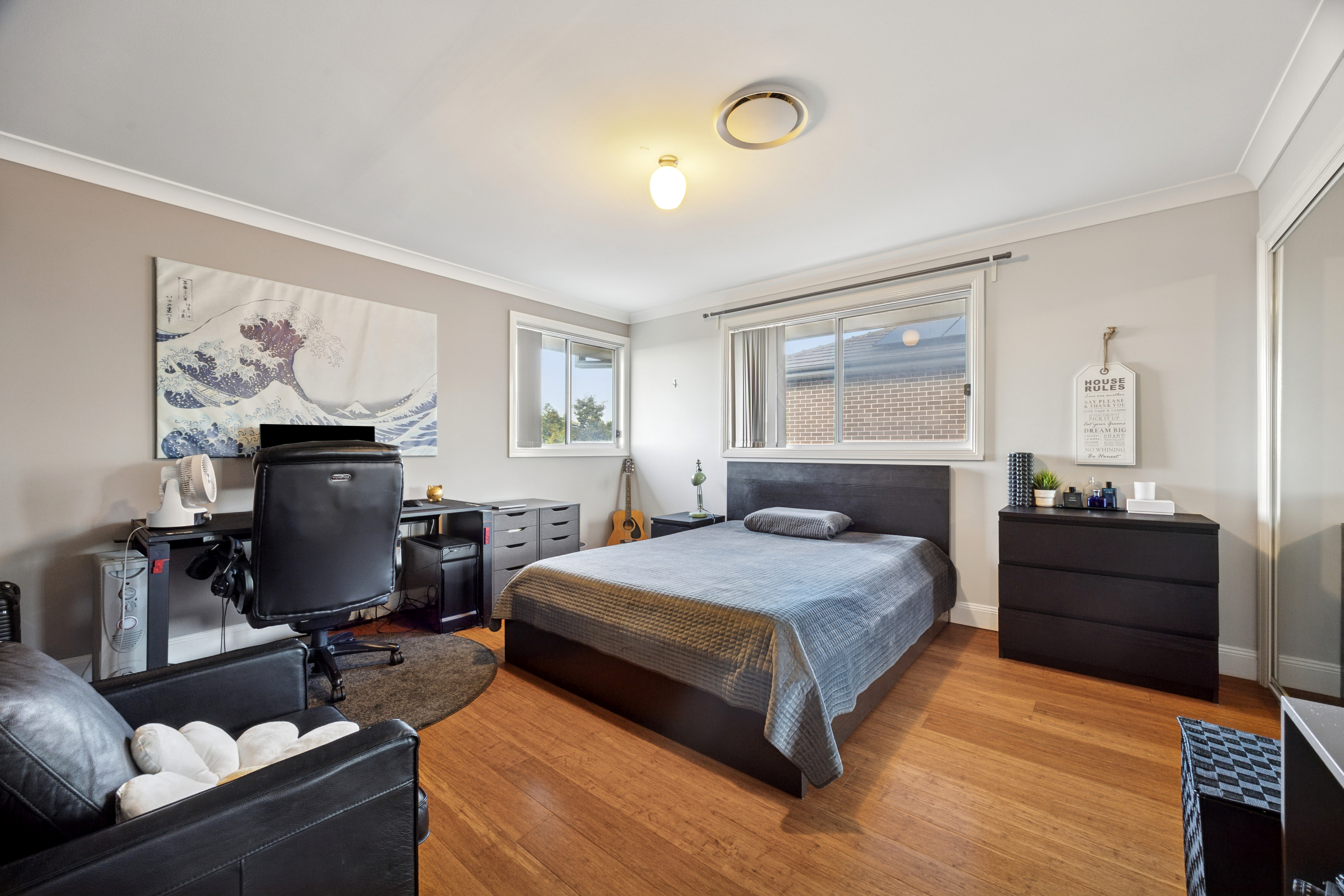 Prakash Paudel from Multi Dynamic proudly presents this stunning family residence at 16 Taplin Road, Edmondson Park - a modern masterpiece built by Cascade Homes, combining elegance, comfort, and functionality in one of South-West Sydney's most sought-after locations. Perfectly positioned on a 350sqm block, this beautifully finished five-bedroom, three-bathroom home showcases exceptional craftsmanship and thoughtful design throughout, ideal for growing families seeking space, style, and convenience. Property Features: • Contemporary open-plan living and dining area filled with natural light, perfect for family gatherings and entertaining. • Gourmet kitchen featuring a 900mm gas cooktop, stainless steel appliances, huge walk-in pantry, and Caesarstone benchtops. • Five spacious bedrooms, including a fifth bedroom downstairs with a full bathroom - ideal for guests or extended family. • Three full bathrooms, all tiled to the ceiling with quality fittings and a freestanding bathtub in the main bathroom. • Master suite boasting a large walk-in wardrobe and private ensuite. • Second bedroom with private balcony access for added comfort and style. • Timber flooring throughout the home adding warmth and sophistication. • Ducted air conditioning and security system for year-round comfort and peace of mind. • In-built TV unit in the main lounge for a sleek, modern touch. • Separate laundry with direct access to the backyard. • Expansive tiled alfresco area - perfect for outdoor entertaining and family BBQs. • Beautifully landscaped front and back gardens, offering a premium finish with concreted side access on both sides. • Double lock-up garage with internal access. • Solar panels for energy efficiency and savings. Location Highlights: Nestled in a peaceful pocket of Edmondson Park, this home is within easy reach of Edmondson Park Train Station, Ed. Square Shopping Centre, local parks, schools, and major motorways. Offering a balanced lifestyle of tranquility and urban convenience, this home is ideal for those seeking a quality family residence in a thriving community. For more information and to schedule a private viewing, please contact Prakash on 0450 928 535 today! Disclaimer: Multi Dynamic Ingleburn believes that all information contained herein is true and correct to the best of our ability and in no way misleading, however, all interested parties are advised to carry out their own enquiries and relevant searches.